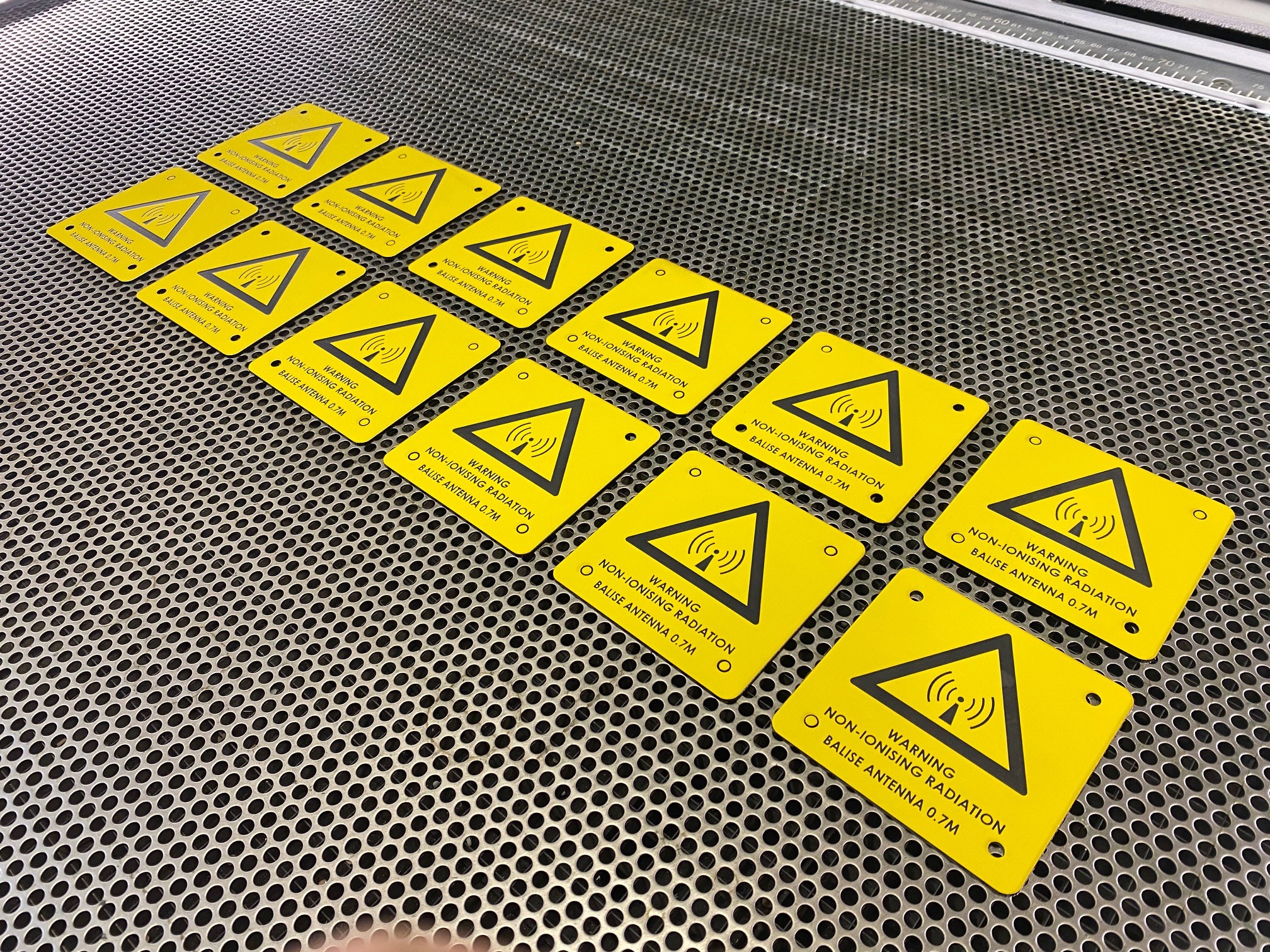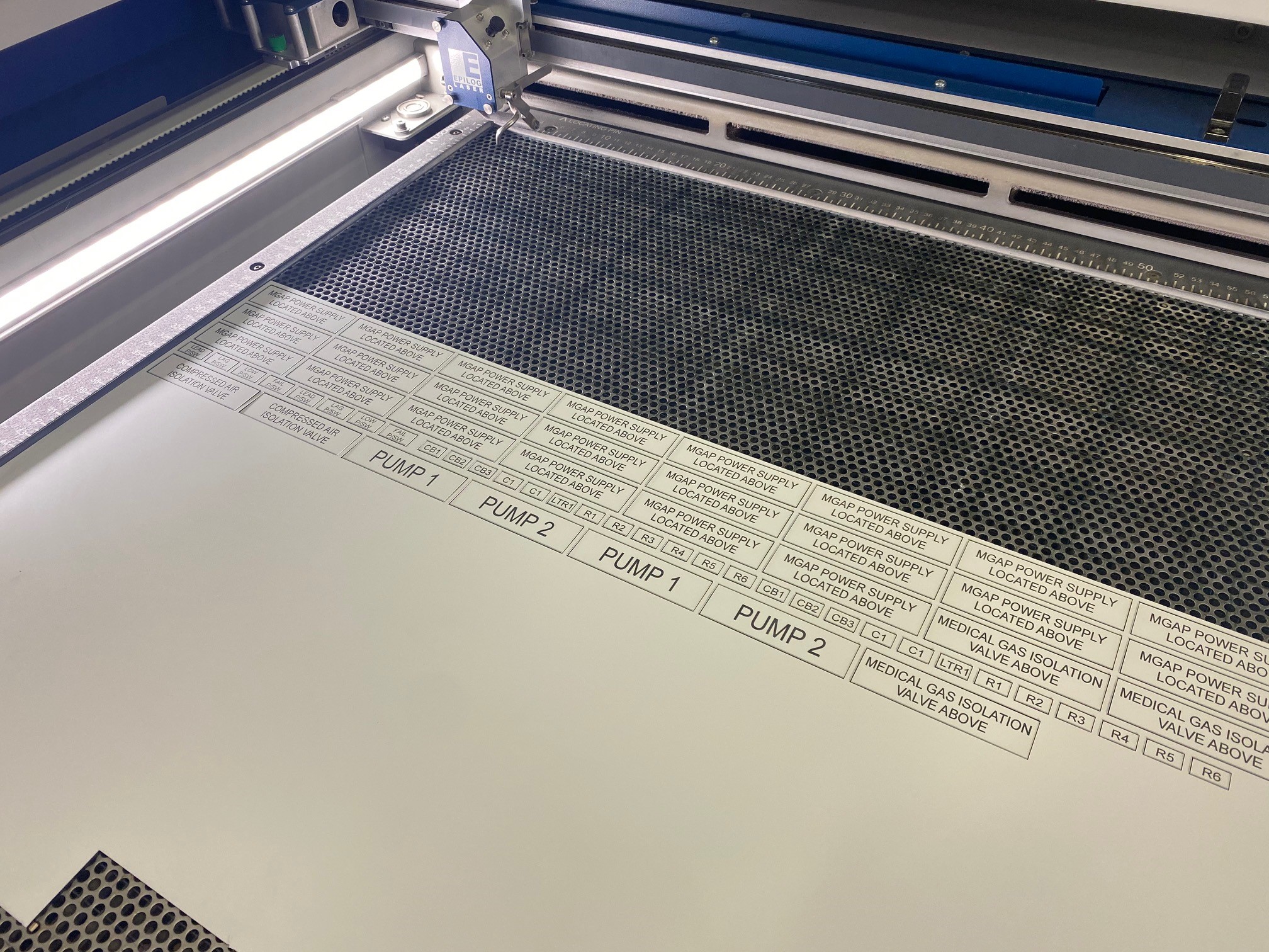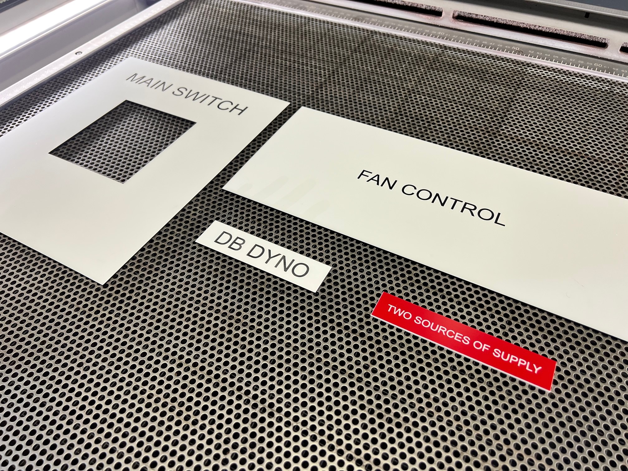 All our electrical engraving labels come with quality 3M brand self-adhesive which features 100% coverage to the back of the label for optimum adhesion. Mounting holes for mechanical fixings can also be laser cut to suit the needs of our clients such as mining, defence, schools and government works.