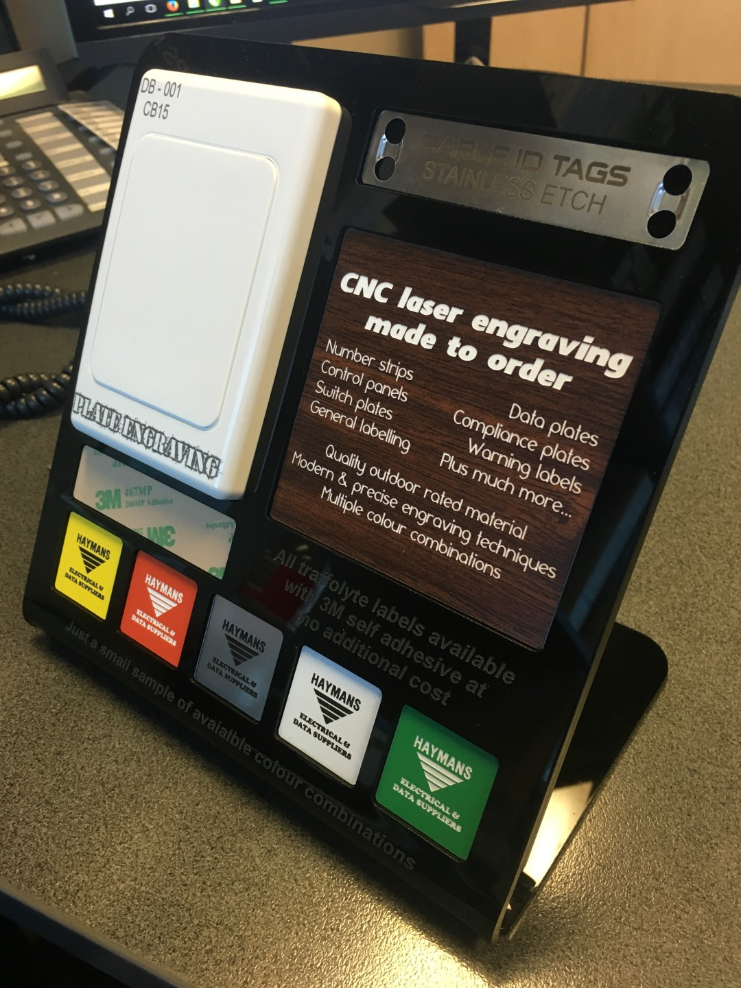 Lasergrave Solutions are also suppliers to some electrical wholesalers. If you are an electrical contractor and hold an account with Hayman's electrical, you can access our services through your local branch and place on your trade account.